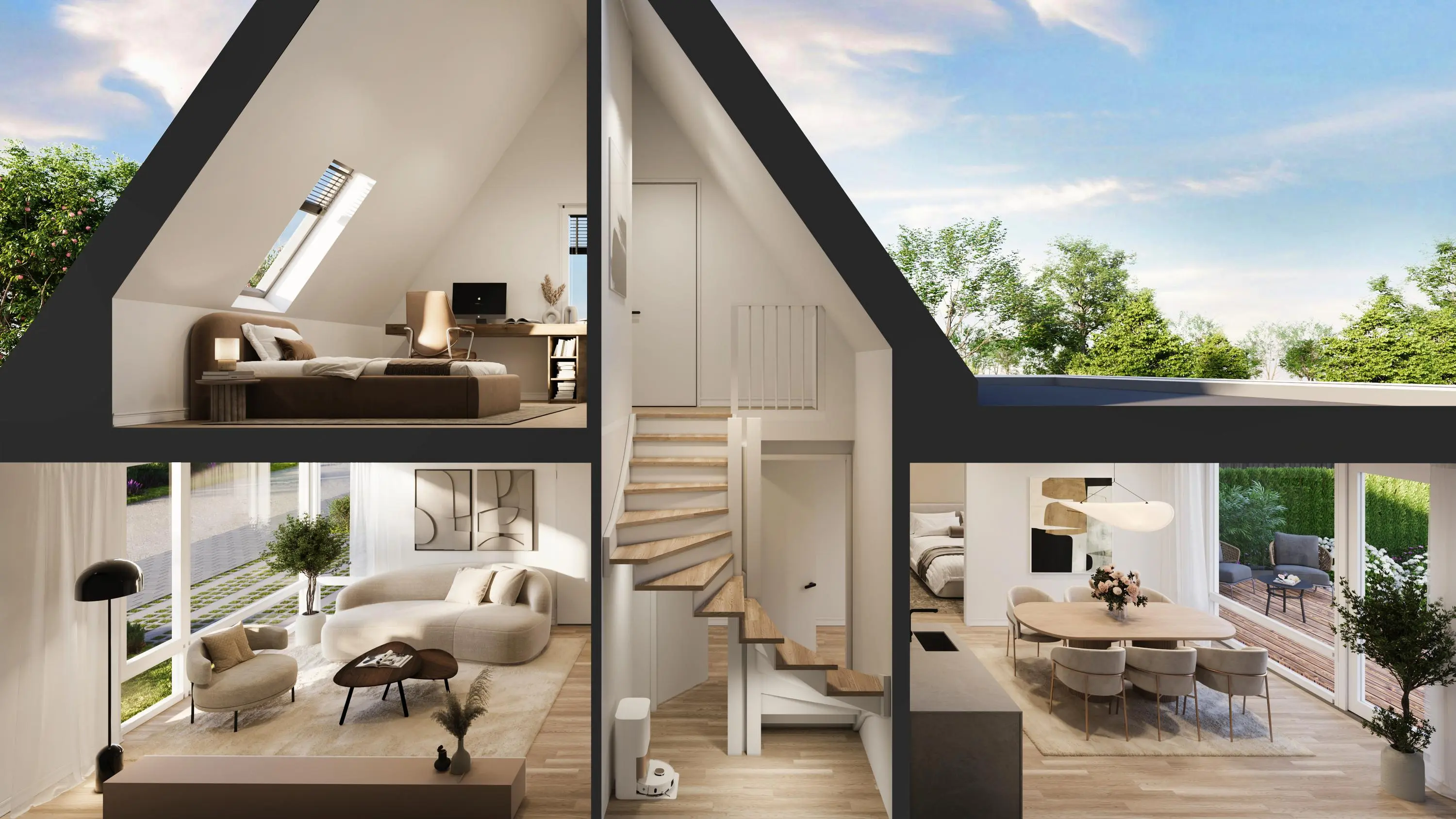 De woningen zijn zowel gelijkvloers als met verdieping beschikbaar: