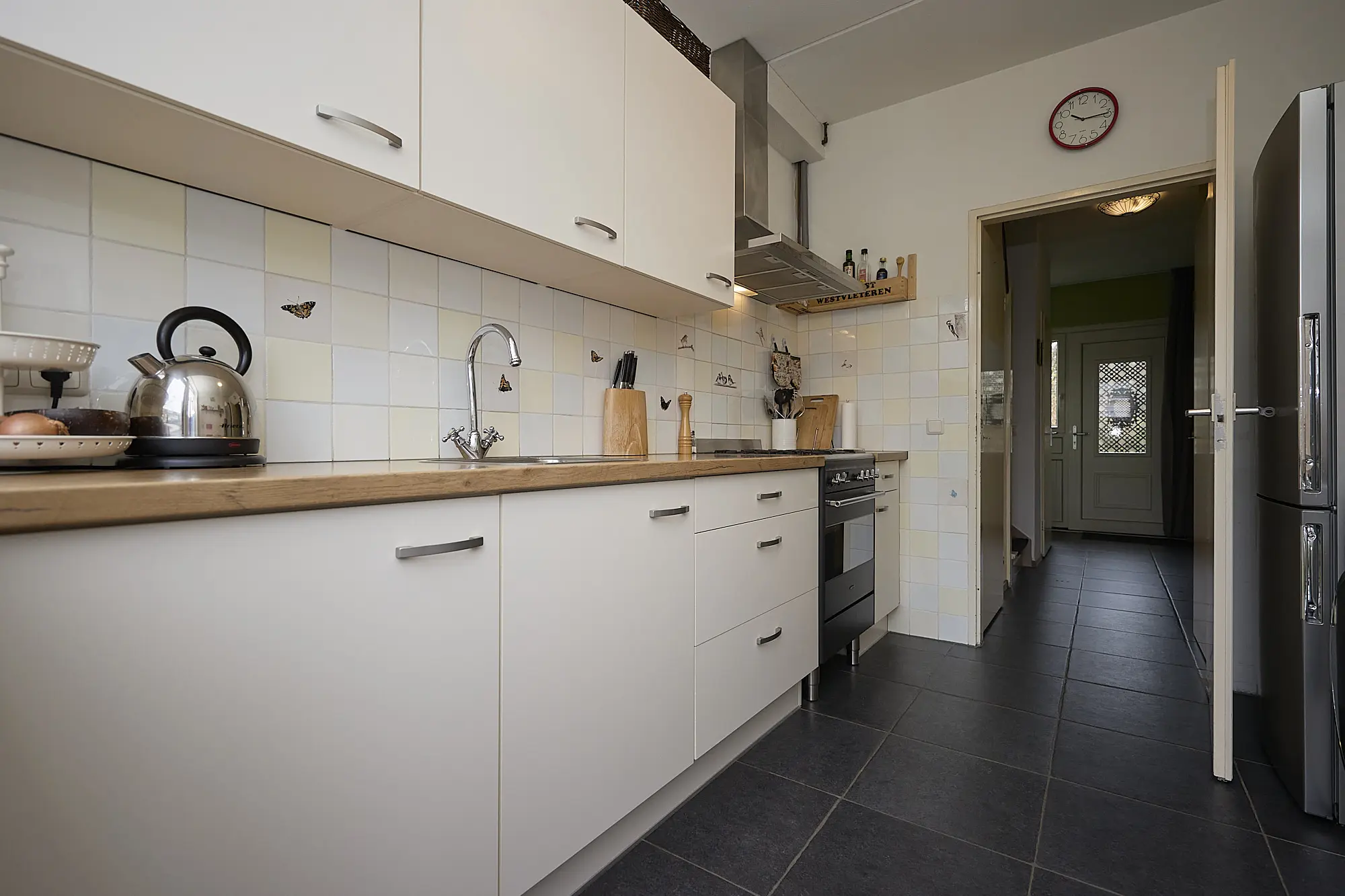 Binnenkomst via de hal met meterkast, trapkast, nette toiletruimte en trap naar de verdieping. Verder valt direct de lichte en ruime woonkamer op, die een open en uitnodigende sfeer heeft. Aansluitend vind je de keuken met praktische opstelling aan weerszijde van de ruimte, keuken is voorzien van diverse apparatuur en meer dan voldoende kastruimte.