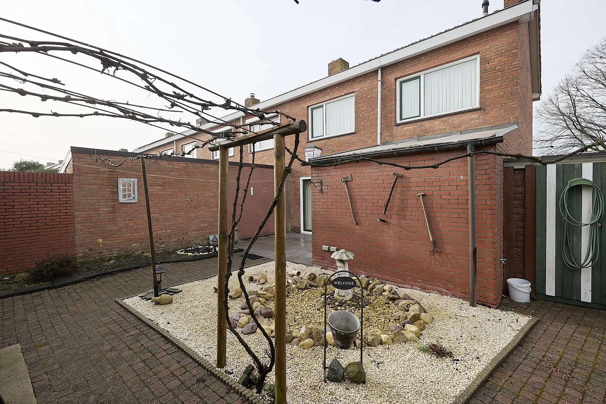 De op het oosten gelegen achtertuin biedt een fijne plek om in alle rust buiten te zitten. Daarnaast beschikt de woning over een vrijstaande stenen garage en een aangebouwde houten berging. Parkeren is mogelijk in de garage, op eigen terrein of in de openbare ruimte.