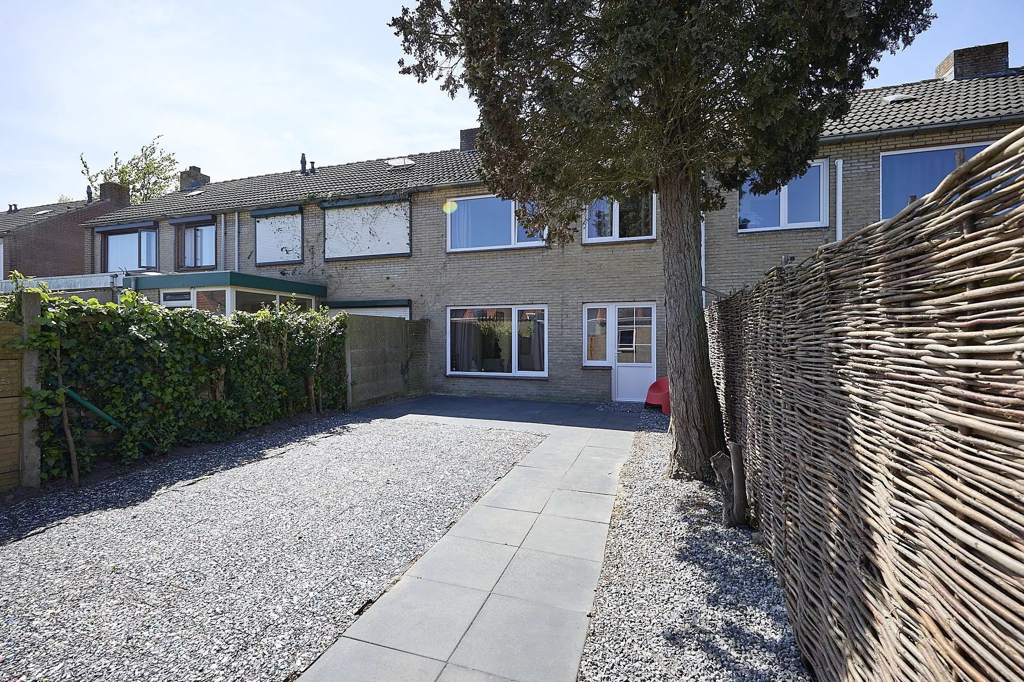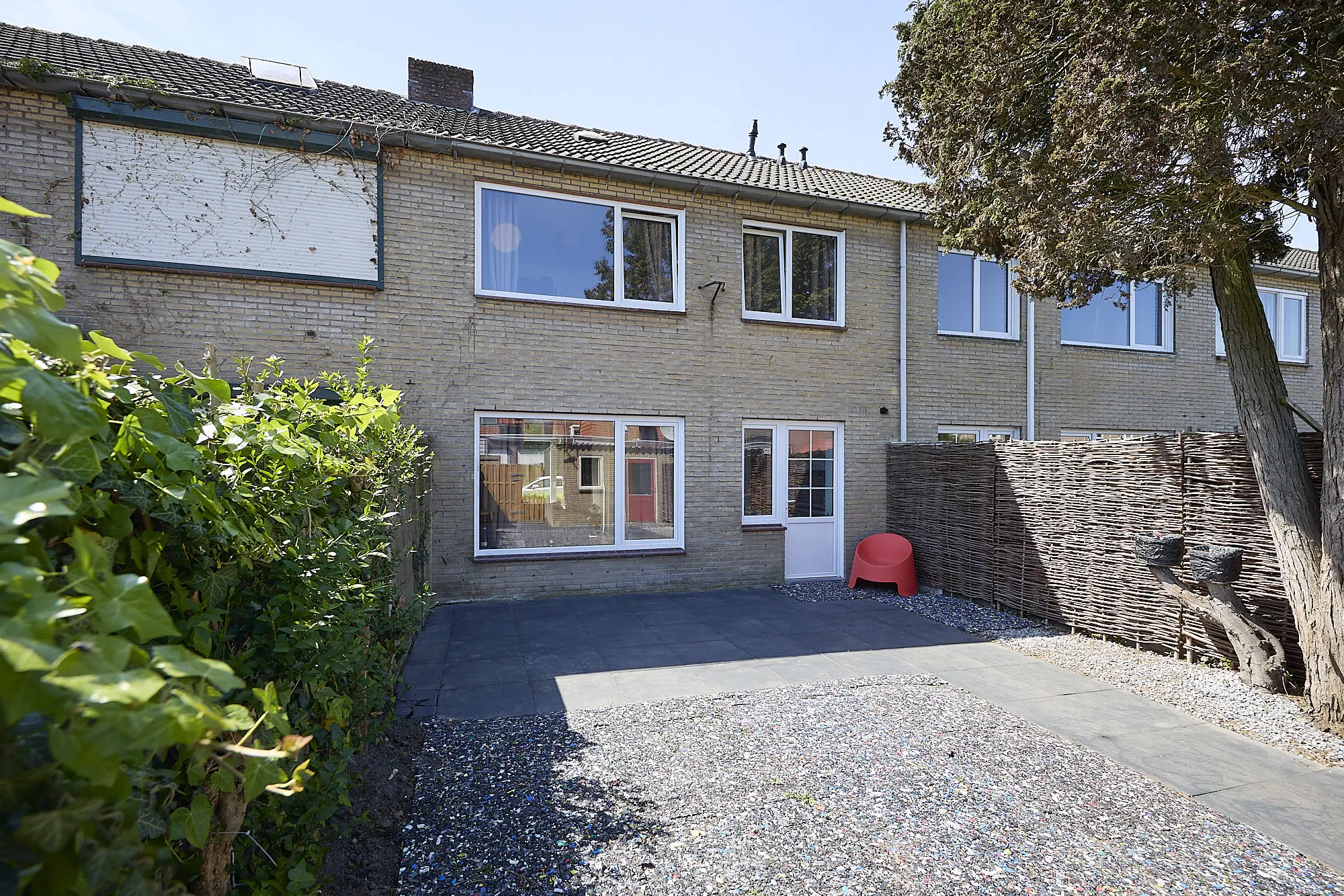 De achtertuin is onderhoudsvriendelijk aangelegd met een combinatie van bestrating en gazon. Daarnaast beschikt de tuin over een stenen berging, ideaal voor het stallen van fietsen, en een handige achterom richting de brandgang.