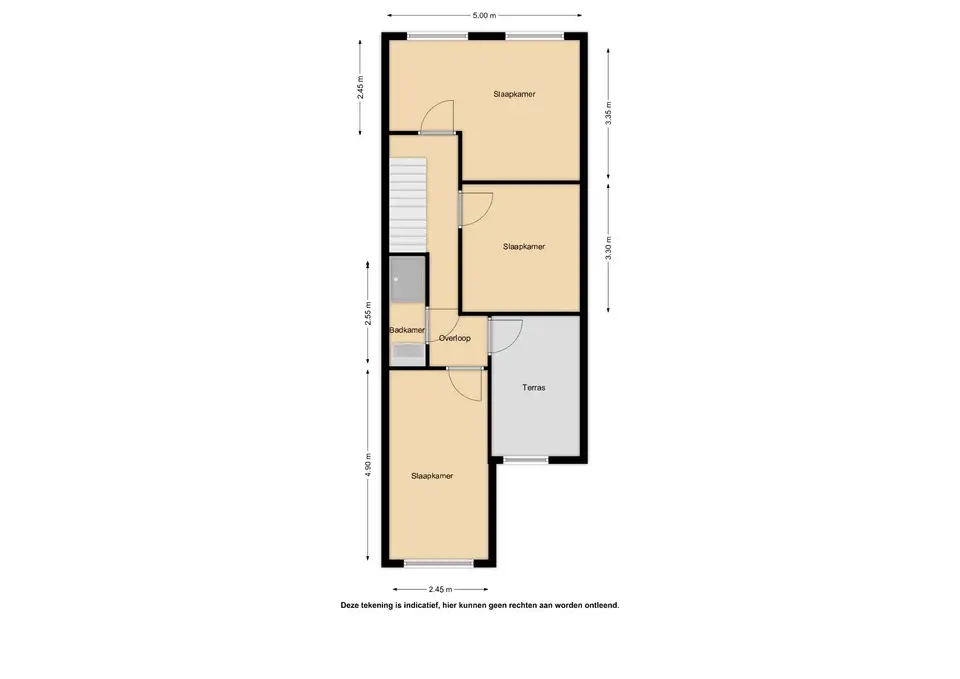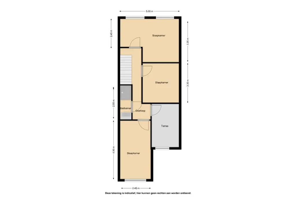 Op de eerste verdieping vindt u drie comfortabele slaapkamers voorzien van vloerbedekking en een badkamer eenvoudig ingericht met douche en wastafel. De ruime zolder bereikbaar middels een vlizotrap biedt volop mogelijkheden, of u nu extra opbergruimte zoekt of droomt van een werk- of hobbykamer.