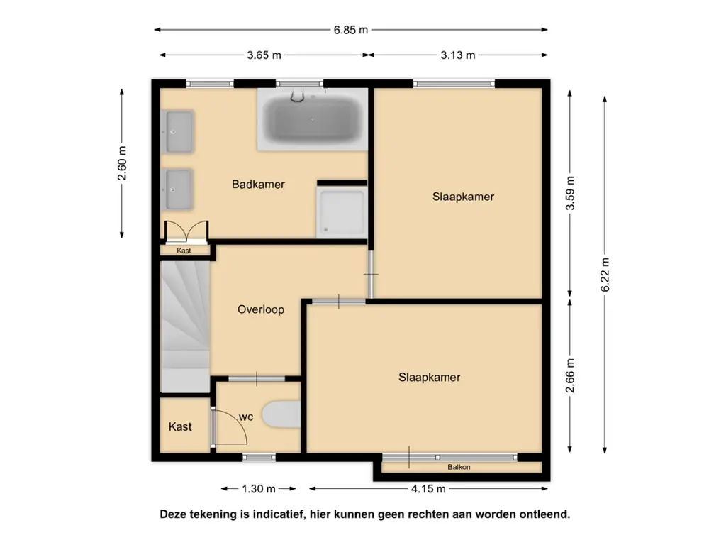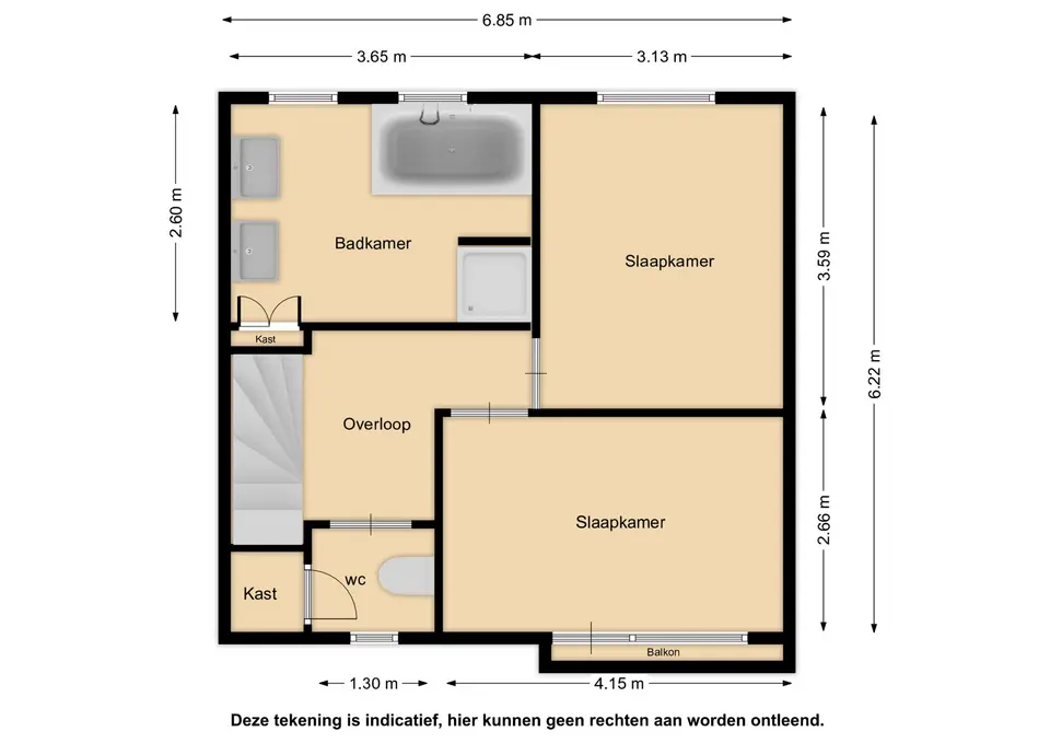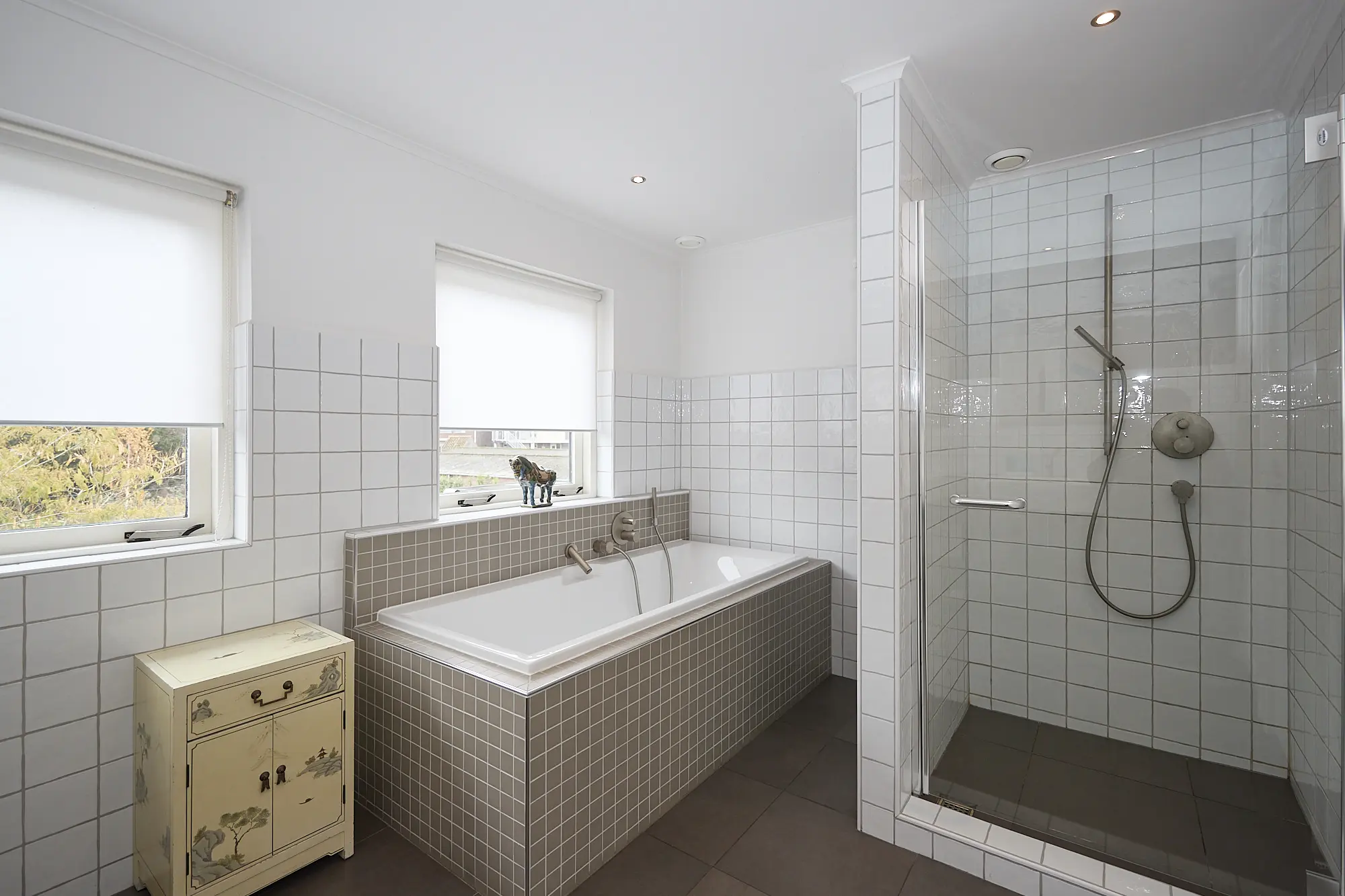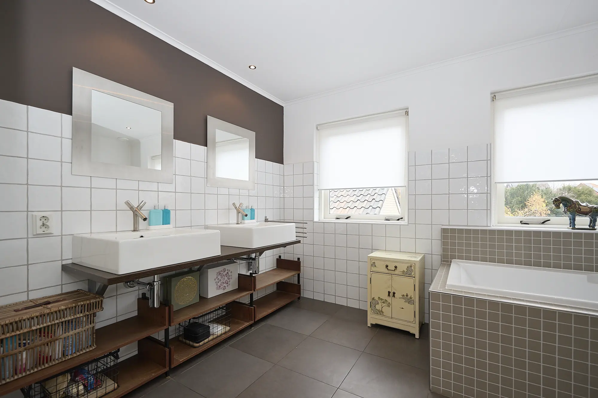 Op de eerste verdieping bevinden zich twee comfortabele slaapkamers die zorgen voor een rustige nachtrust, in de voormalige 3e slaapkamer is een ruime badkamer gecreëerd voorzien van ligbad, douchecabine en dubbele wastafel met meubel. Van de voormalige badkamer op deze verdieping is een aparte toiletruimte gemaakt en is er een aparte bergruimte te vinden.