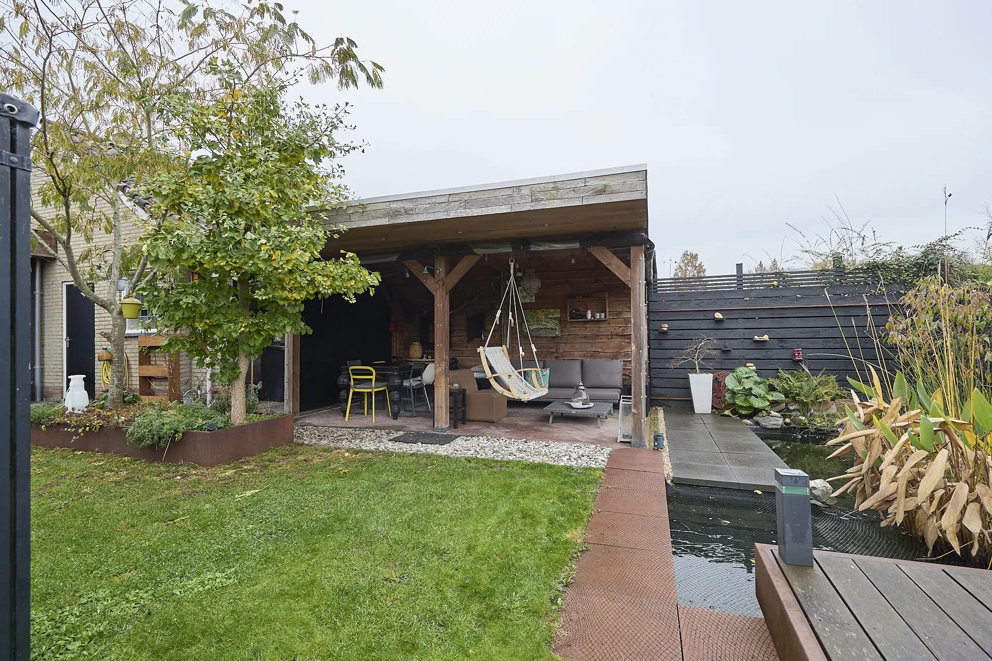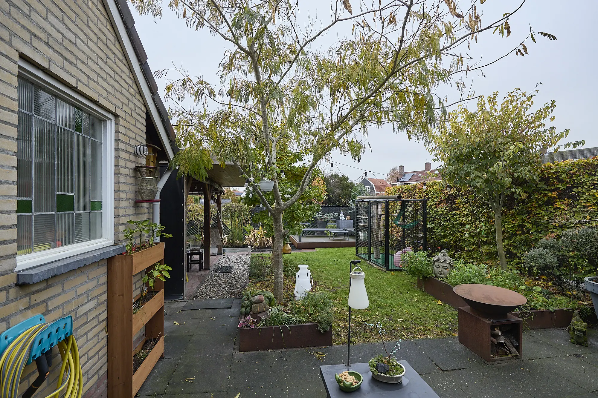 Buiten word je verrast door een sfeervolle tuin met verschillende terrassen en een overkapping, ideaal om te genieten van lange zomerdagen, een barbecue met vrienden of spelende kinderen. De garage, voorzien van elektriciteit en een handige zolderruimte, biedt niet alleen plaats aan een auto, maar ook volop extra bergruimte. Daarnaast is er voldoende parkeergelegenheid onder de carport of oprit.