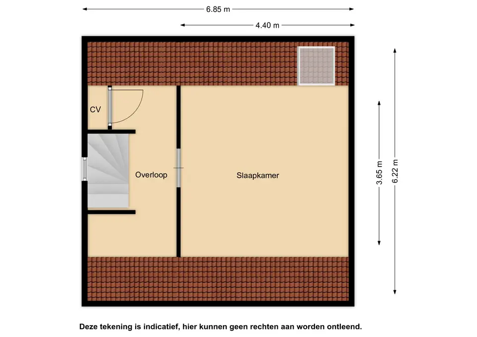 De tweede verdieping is bereikbaar met een vaste trap en biedt plaats aan een derde slaapkamer die ook uitstekend dienst kan doen als werkkamer of hobbyruimte. Op de overloop is veel bergruimte te vinden en tevens de cv-ketel.
