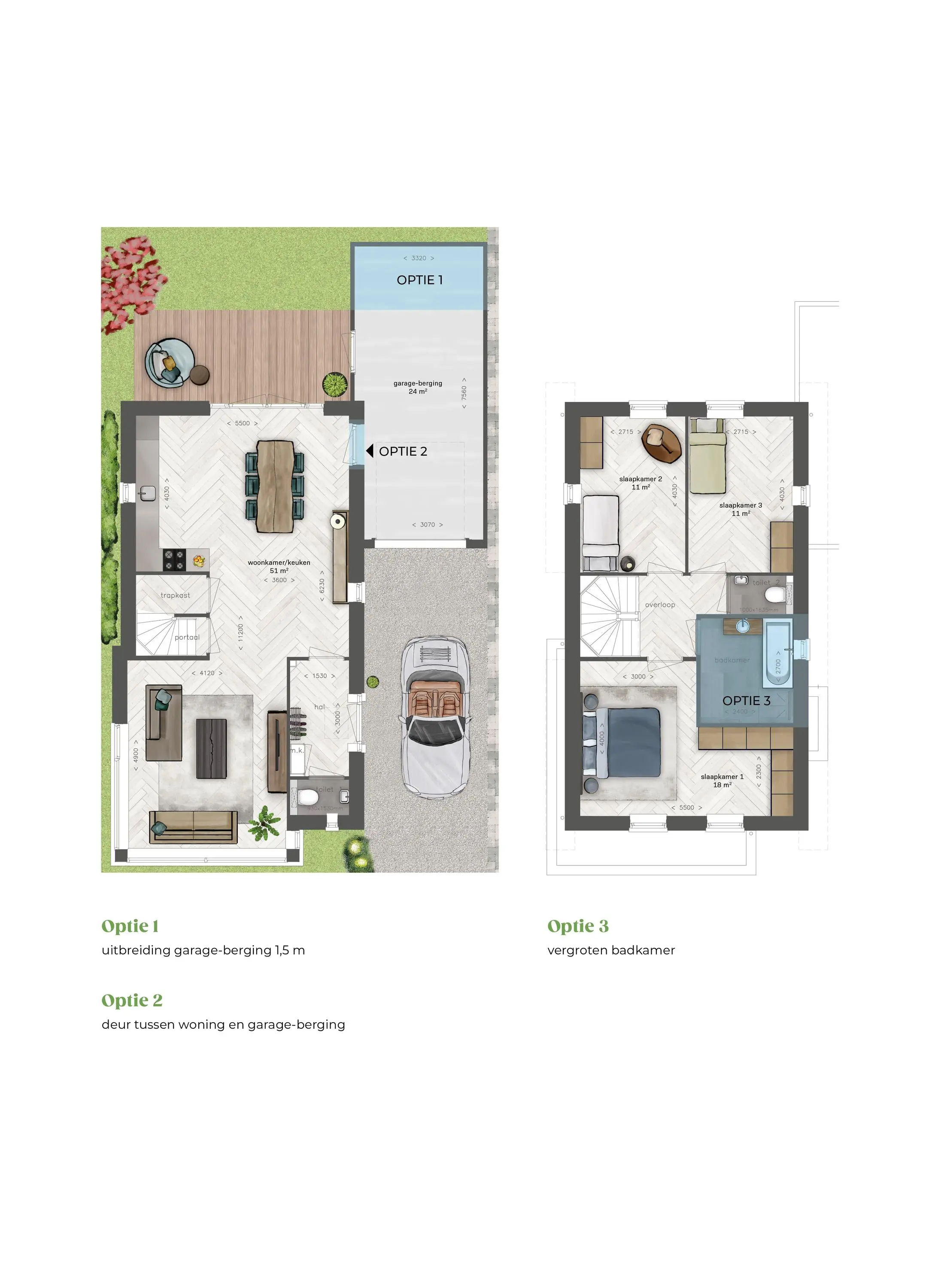 De woning wordt 100% energieneutraal opgeleverd, inclusief zonnepanelen en vloerwarming- en koeling. Dankzij de diverse opties kan de woning volledig op maat gerealiseerd worden, zodat deze gegarandeerd aansluit op uw specifieke woonwensen.