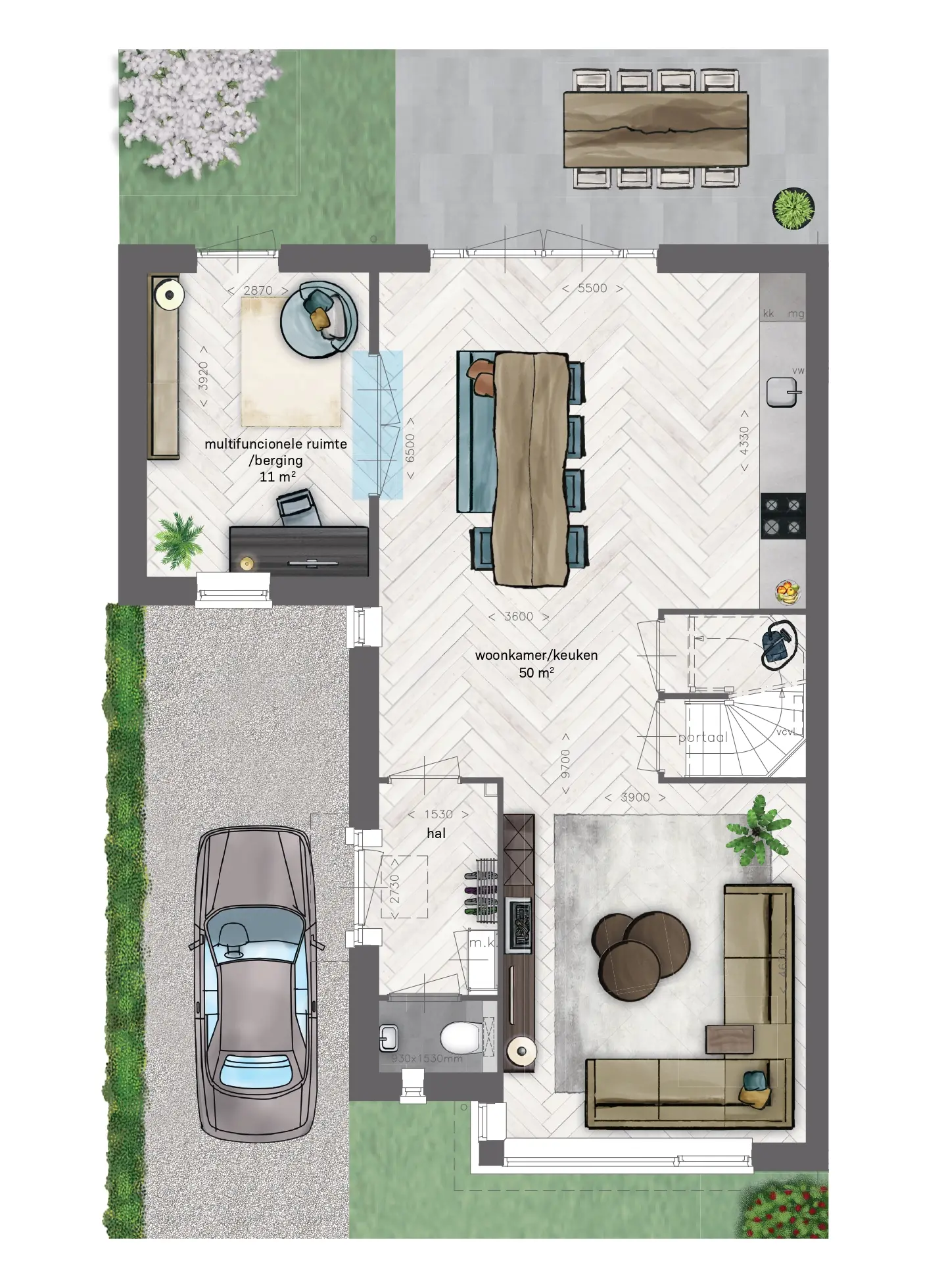 Ook buiten is er genoeg mogelijkheid om te genieten. De kavel van 233 tot 289 m2 met een zuidwest ligging biedt voldoende ruimte om een mooie tuin met terras aan te leggen. Optioneel kunt u ook nog voor een garage kiezen.