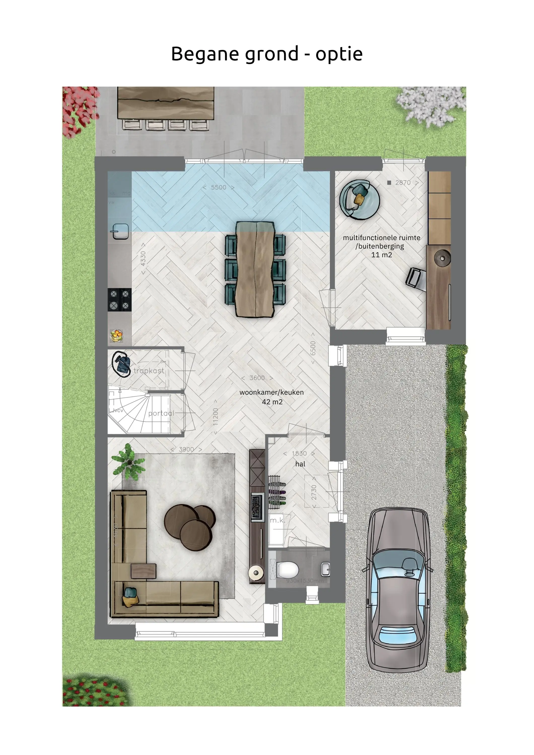 Ook buiten is er genoeg mogelijkheid om te genieten. De kavel van 267 tot 326 m2 met een zuidwest ligging biedt voldoende ruimte om een mooie tuin met terras aan te leggen.