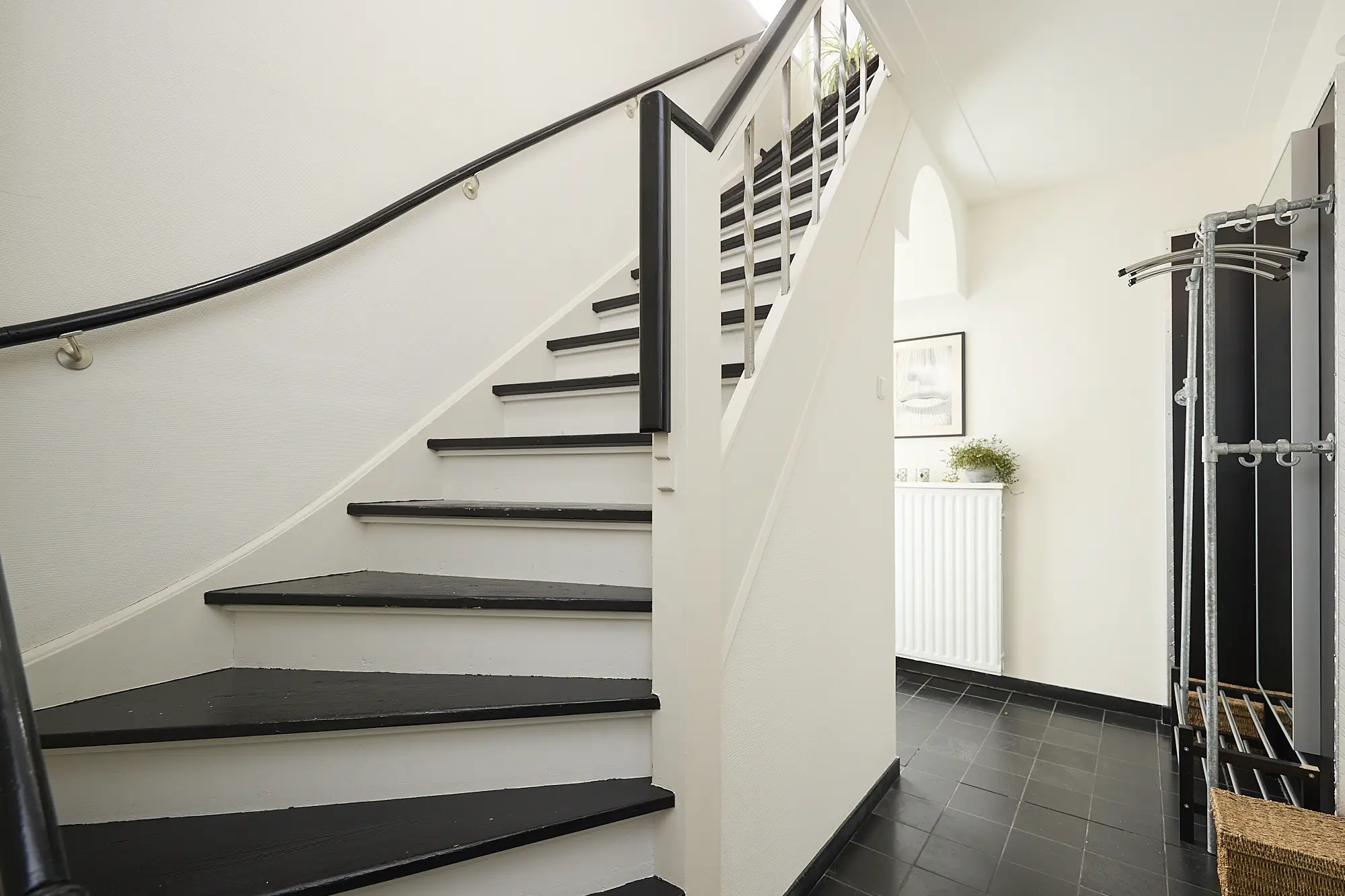 Een fijne entree met toegang tot extra ruimte. U komt binnen in een ruime, lichte hal die prettig aanvoelt. Hier vindt u het toilet, de meterkast, de toegang tot de eerste verdieping, de woonkamer én de vaste trap naar de kelder. De kelder is ideaal als voorraadruimte – royaal genoeg om rekken te plaatsen en zo altijd extra voorraad, huishoudelijke spullen of zelfs een wijncollectie bij de hand te hebben.