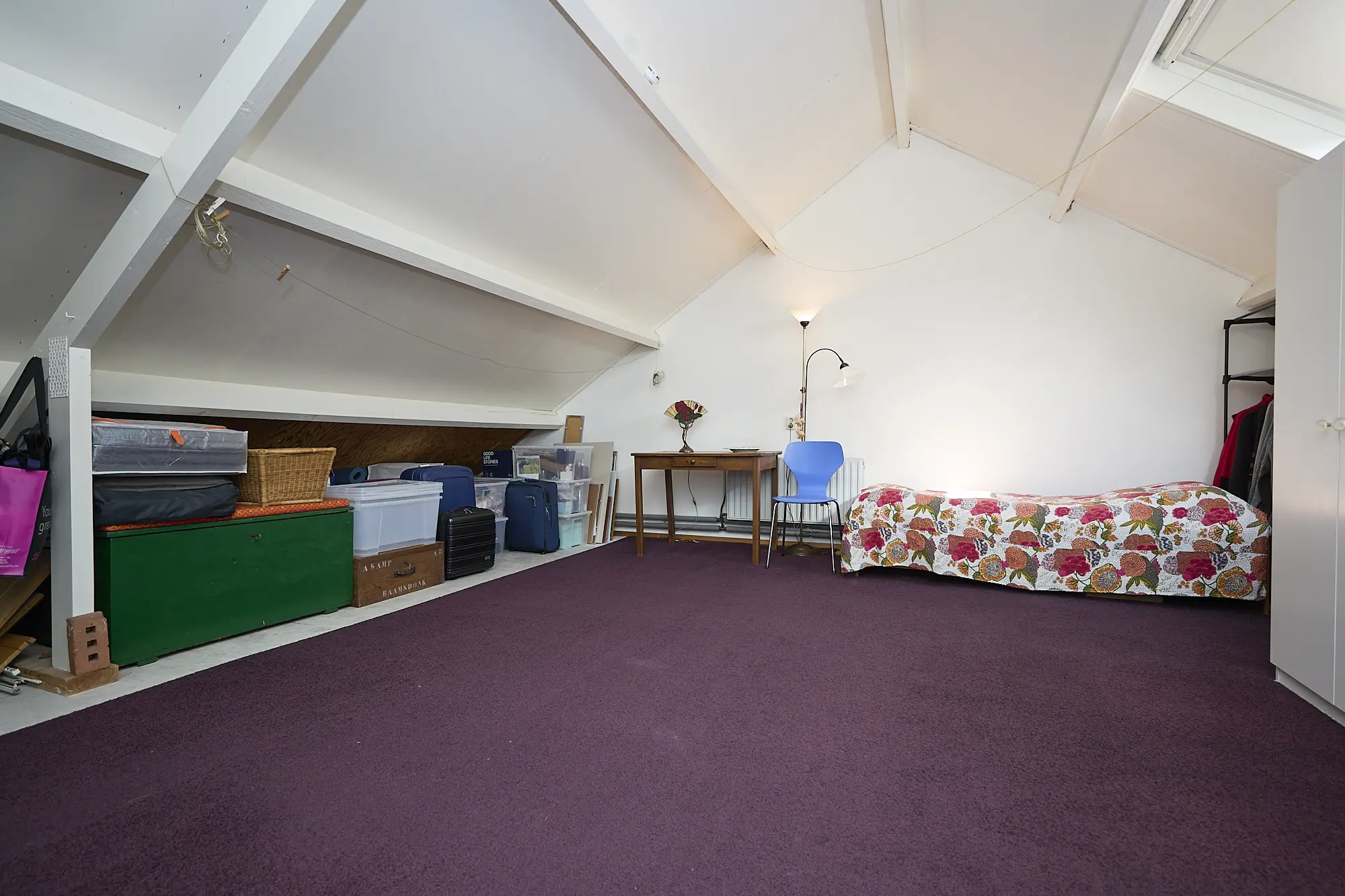 Via een vaste trap bereikt u de 2e verdieping, momenteel een open ruimte met Velux-raam. Hier vindt u de aansluitingen voor wasmachine en droger, evenals de cv-ketel. Deze verdieping biedt de mogelijkheid om eenvoudig een 4e slaapkamer te creëren.