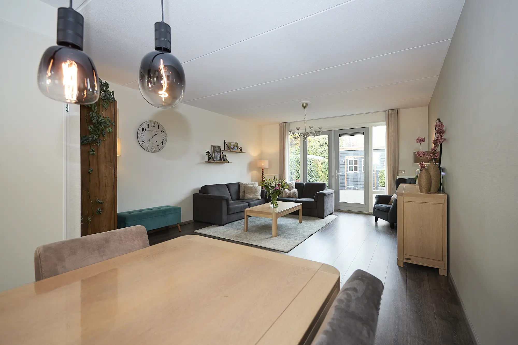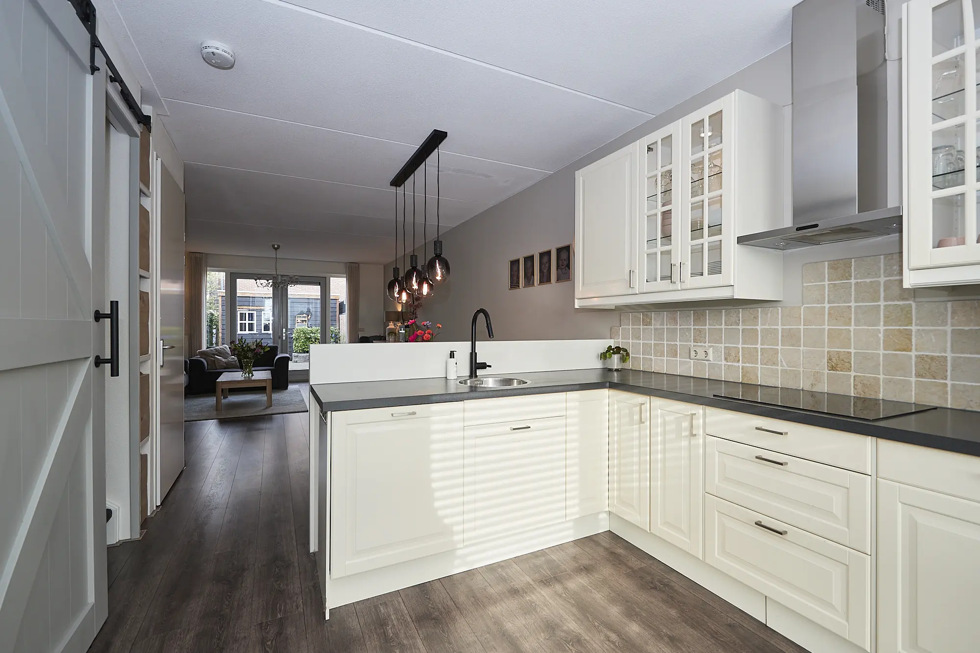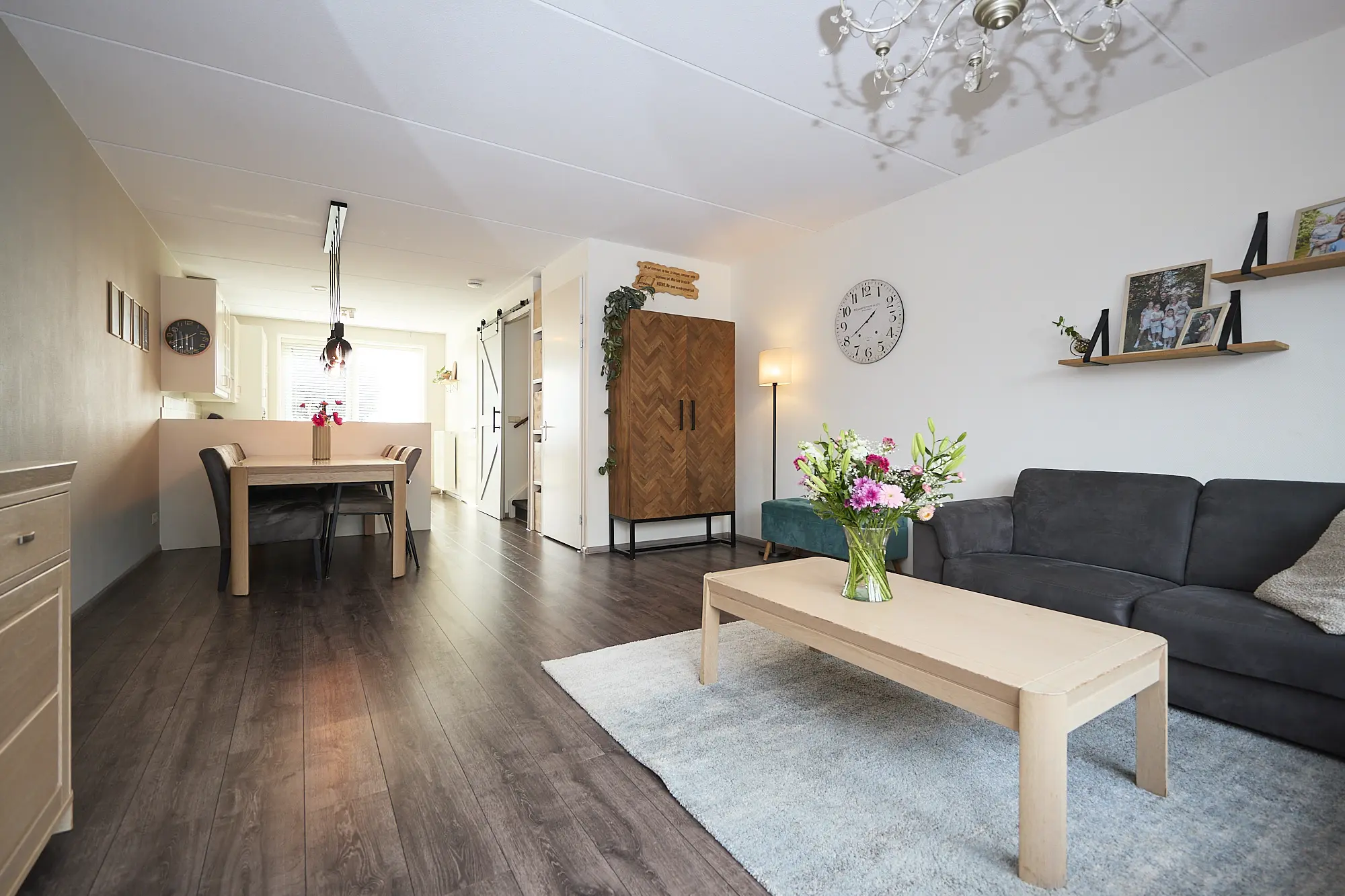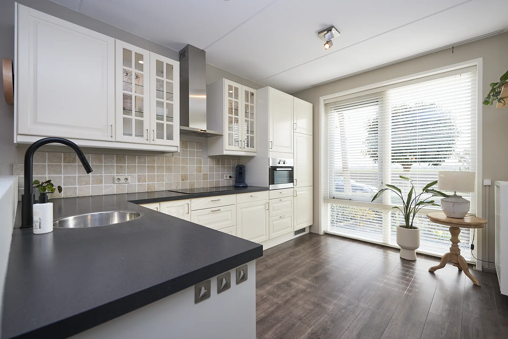 De lichte, ruime uitgebouwde woonkamer verwelkomt je direct en is volledig instapklaar. De nette laminaatvloer loopt door tot in de keuken en hal en zorgt voor een sfeervolle, uniforme uitstraling. Via de tuindeur stap je zo het terras op. De open keuken is modern en praktisch ingericht en voorzien van diverse inbouwapparatuur: ideaal voor zowel dagelijkse maaltijden als culinaire avonturen.