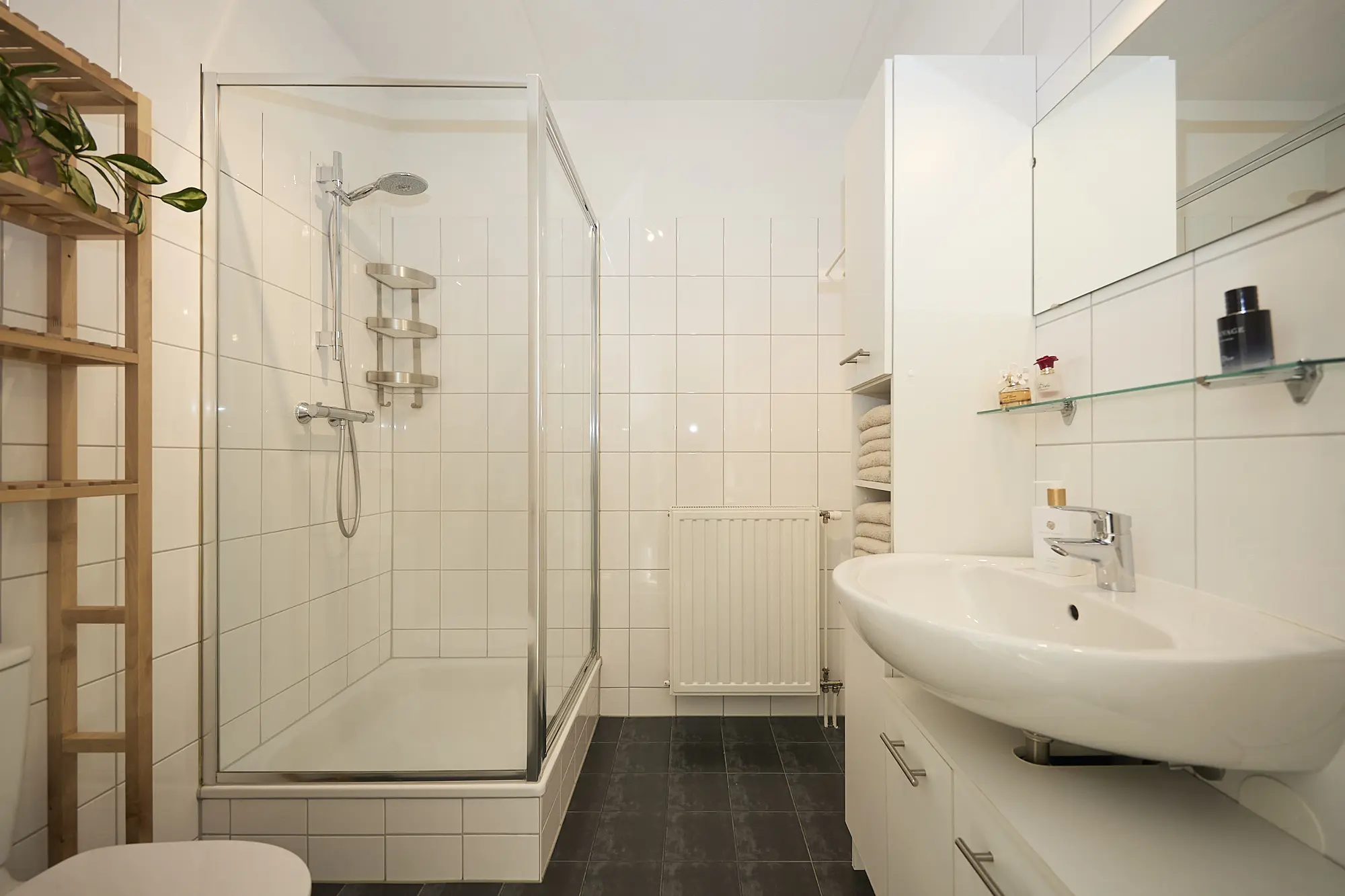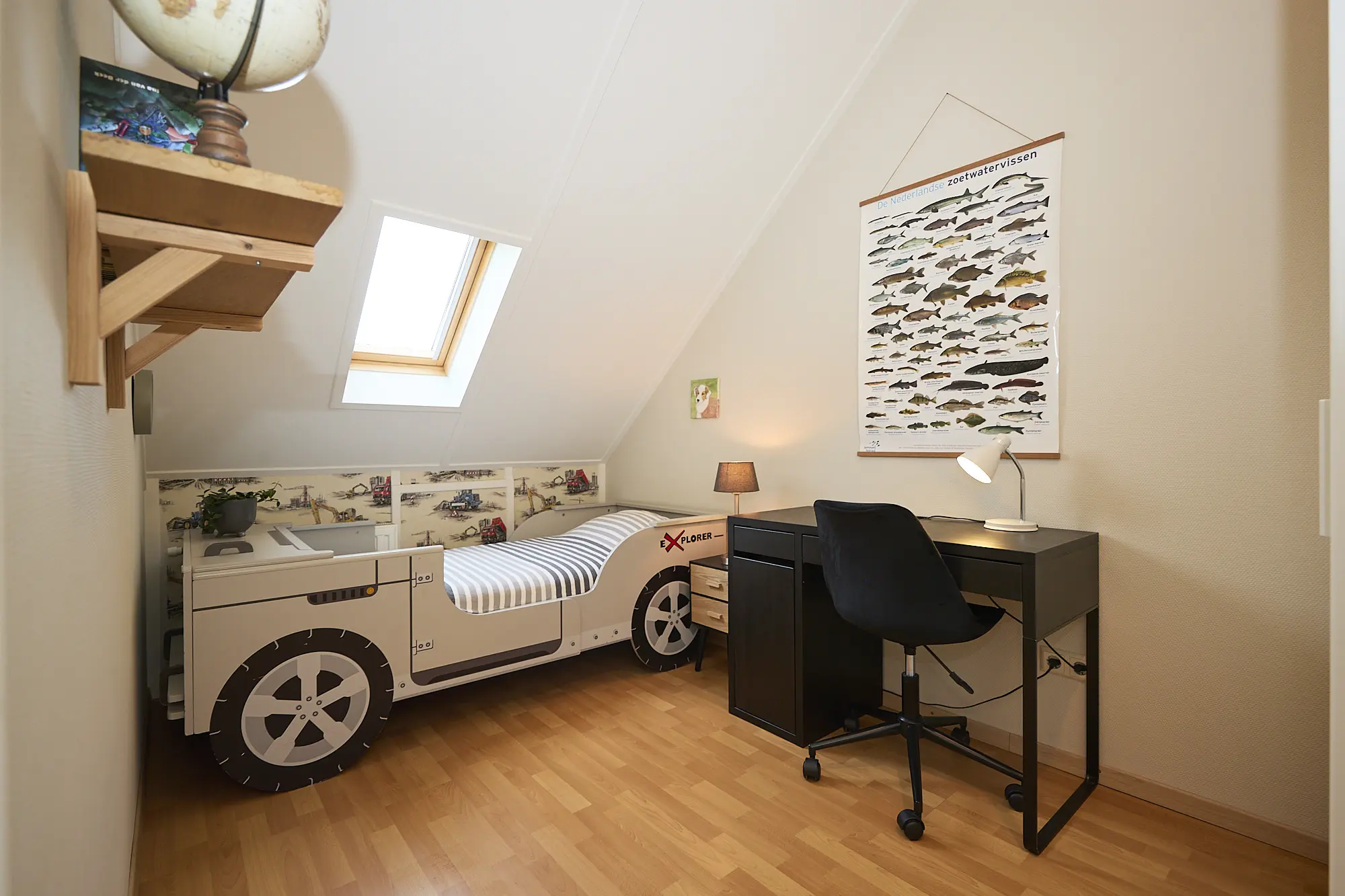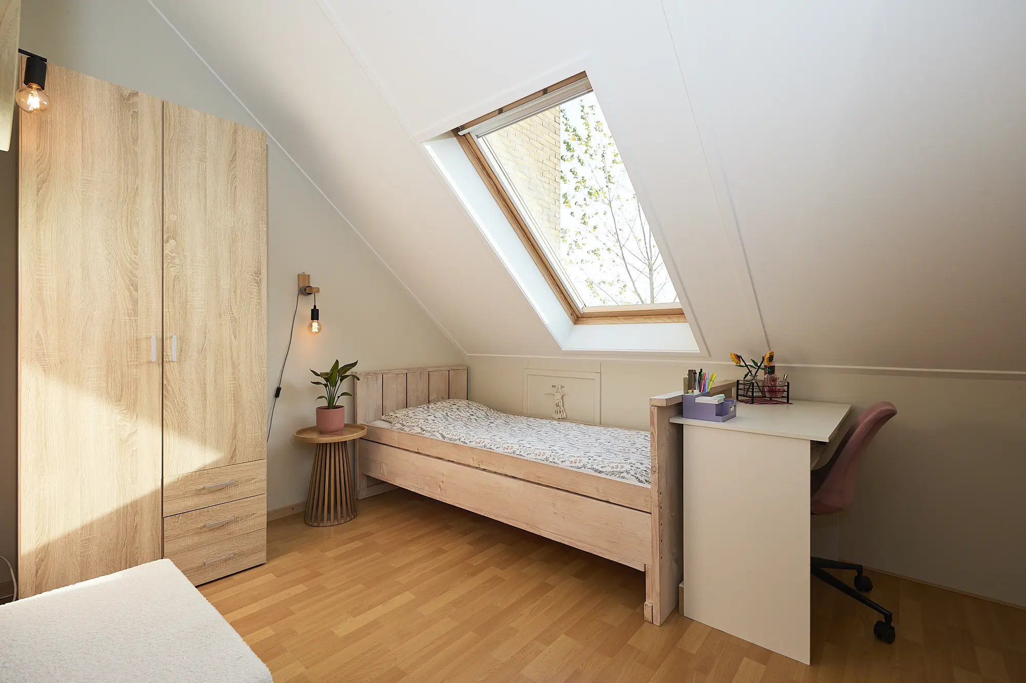 Op de eerste verdieping vind je twee ruime slaapkamers afgewerkt met een laminaatvloer en een complete badkamer met toilet, douche, wastafel en badkamermeubel. De tweede verdieping biedt nog eens twee extra kamers, perfect in te richten als slaapkamer, kantoor of hobbyruimte.