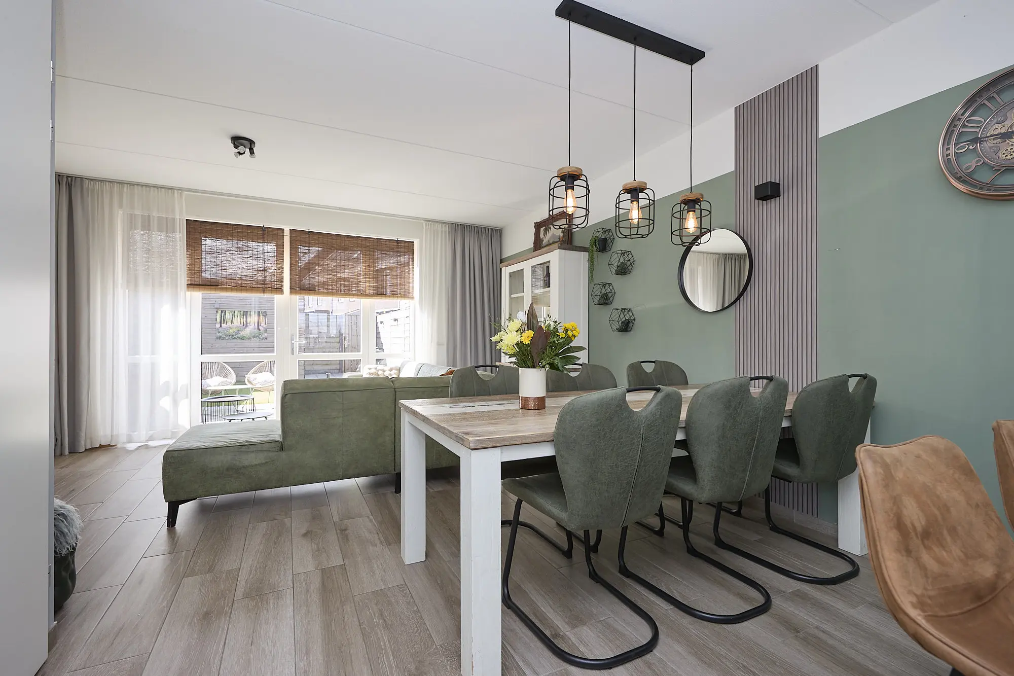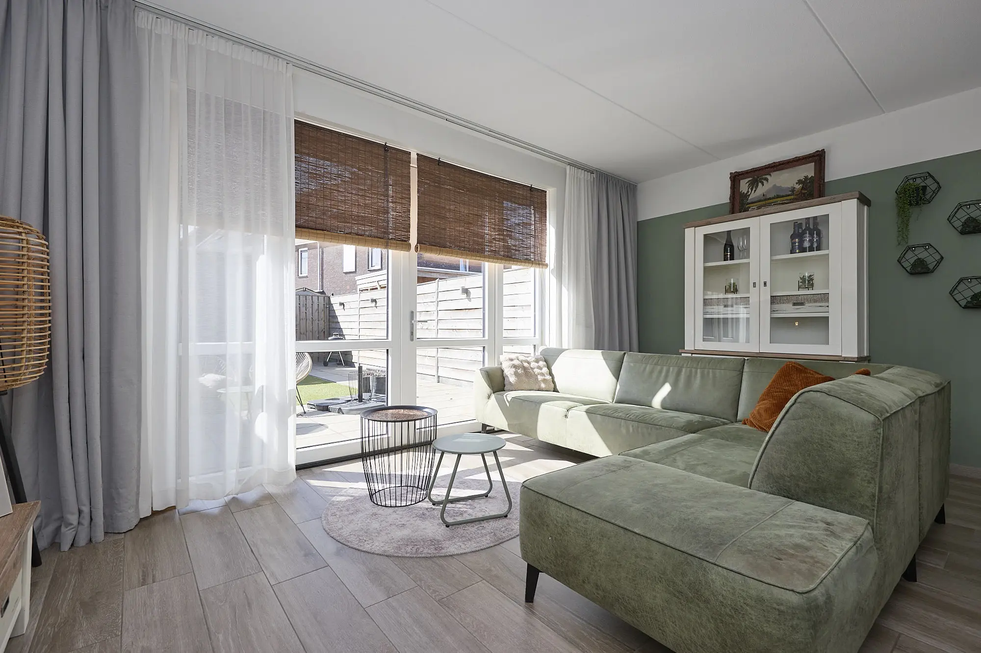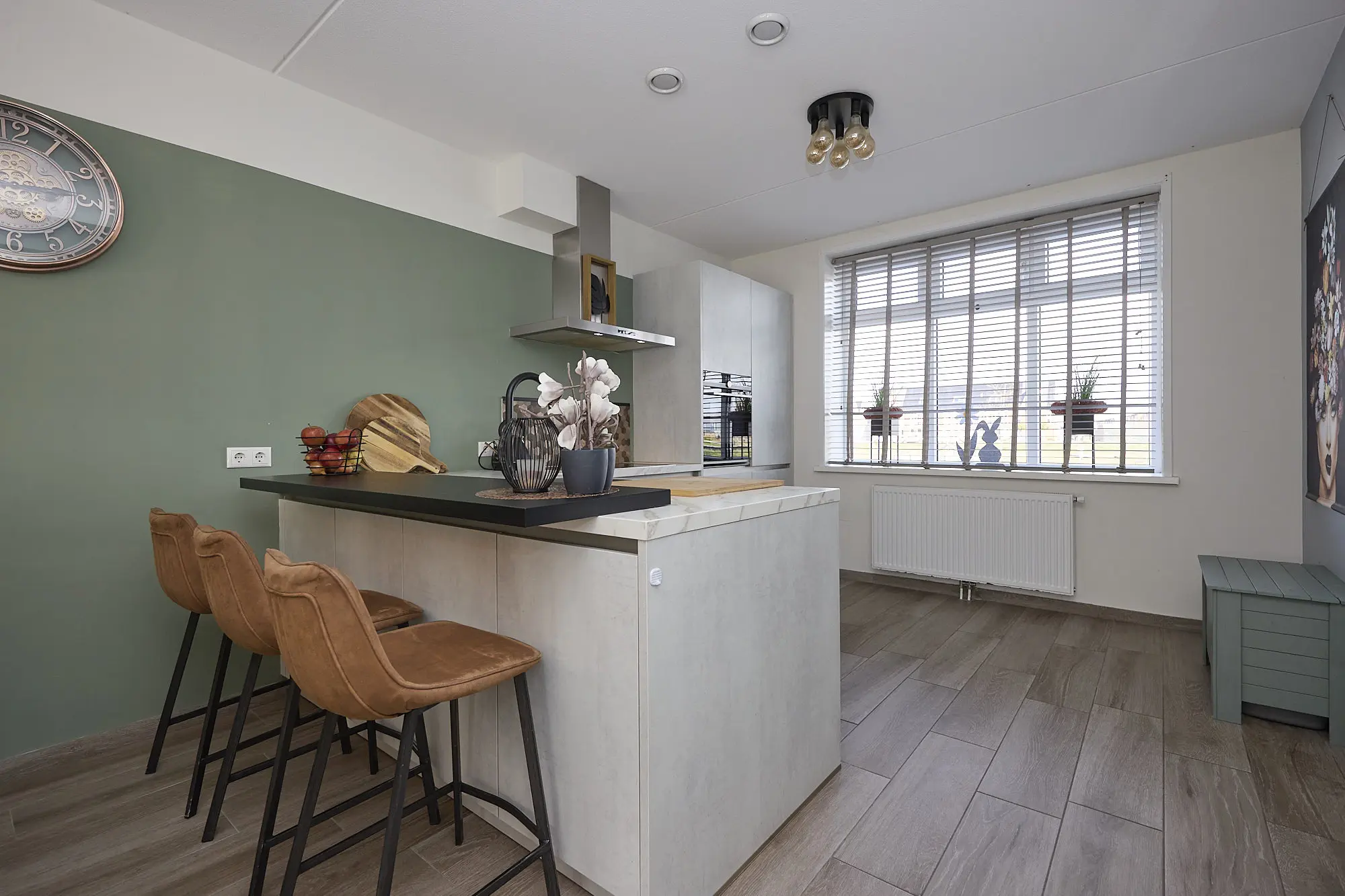 De begane grond is afgewerkt met een moderne houtlook tegelvloer: stijlvol én onderhoudsvriendelijk.