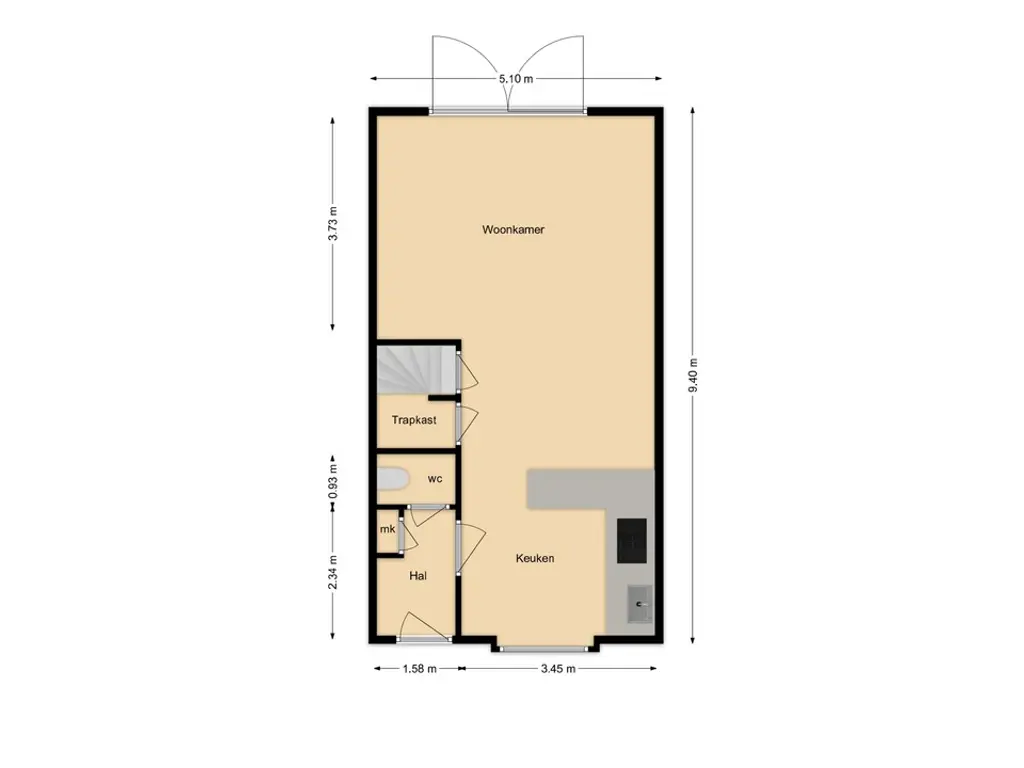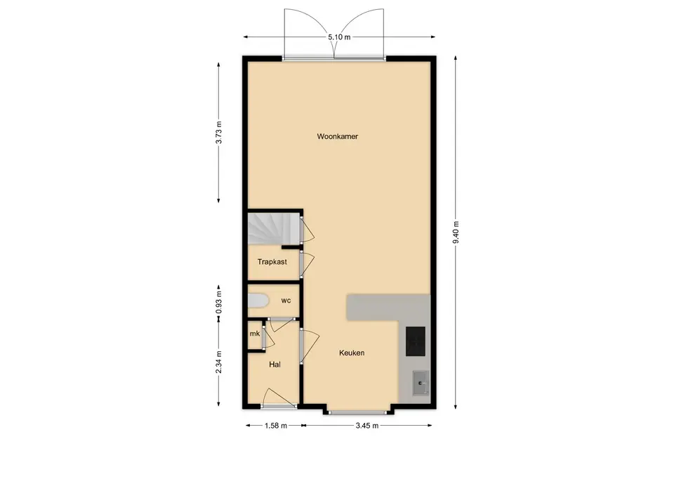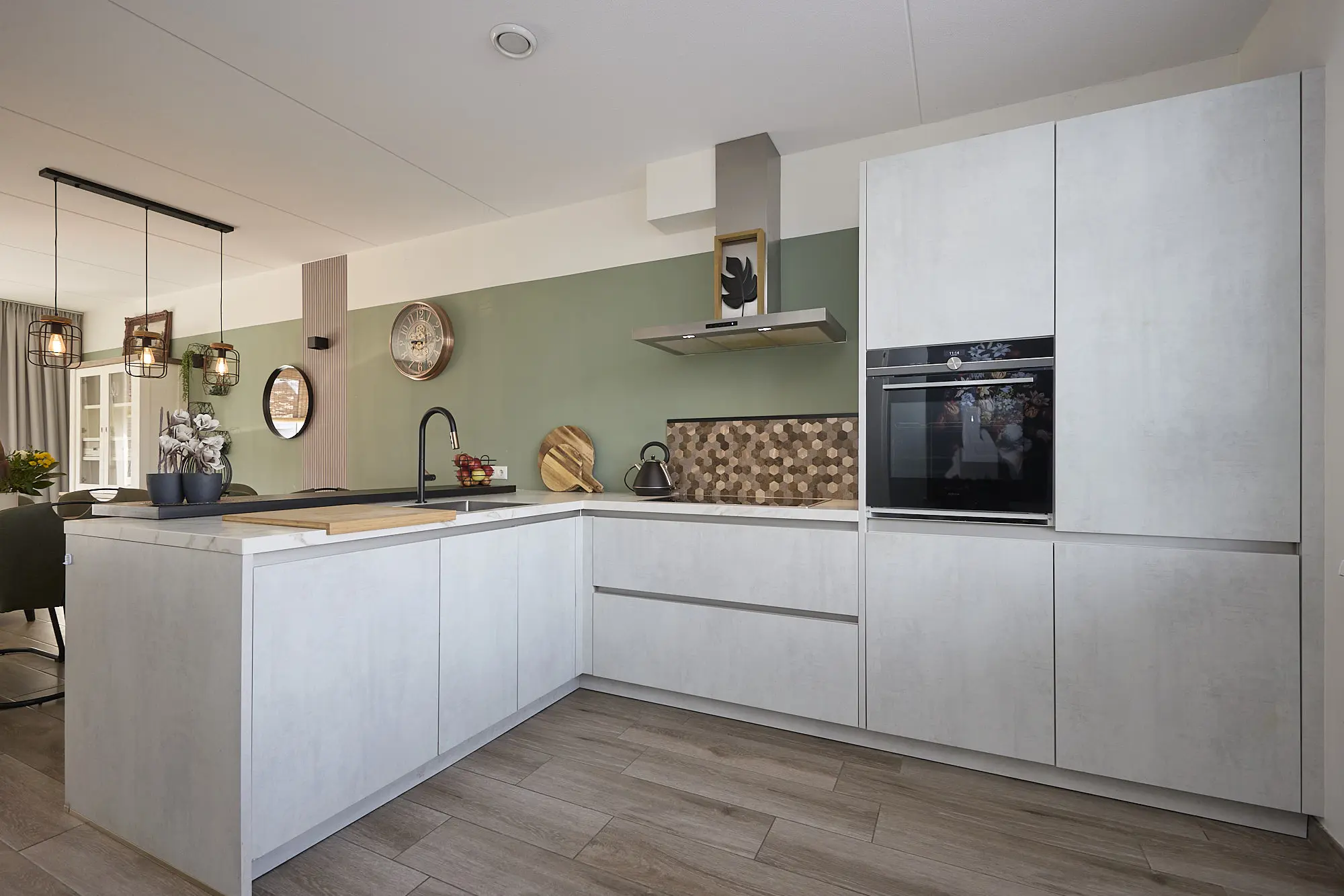 De begane grond is afgewerkt met een moderne houtlook tegelvloer: stijlvol én onderhoudsvriendelijk.