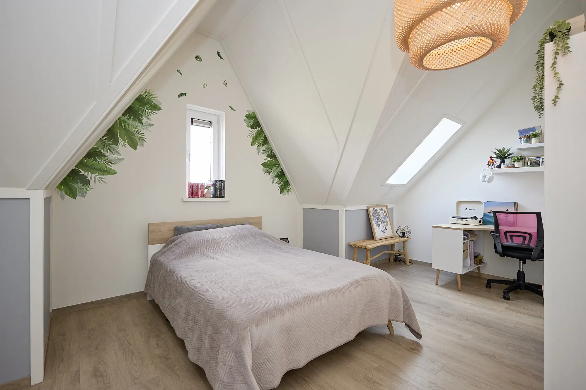 De tweede verdieping, bereikbaar via een vaste trap, biedt nog eens twee extra slaapkamers – perfect als werk-, hobby- of logeerruimte. Daarnaast is er een aparte technische ruimte met aansluitingen voor wasmachine en droger.