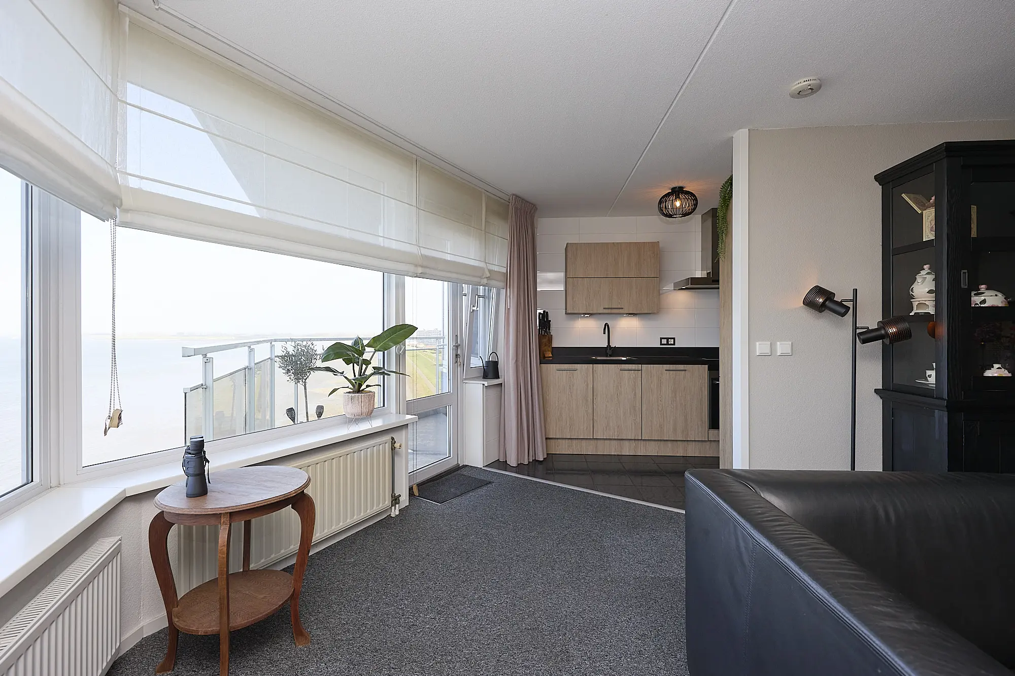 U komt het appartement binnen in de hal, die is voorzien van een modern toilet, een praktische bergkast en een video-intercominstallatie. Vanuit de hal heeft u toegang tot de diverse vertrekken, waaronder de royale woonkamer. Deze valt op door de grote raampartijen die veel natuurlijk licht binnenlaten en een prachtig uitzicht over de Westerschelde bieden. Het aangrenzende balkon is een heerlijke plek om te ontspannen en te genieten van de voorbijvarende schepen.
