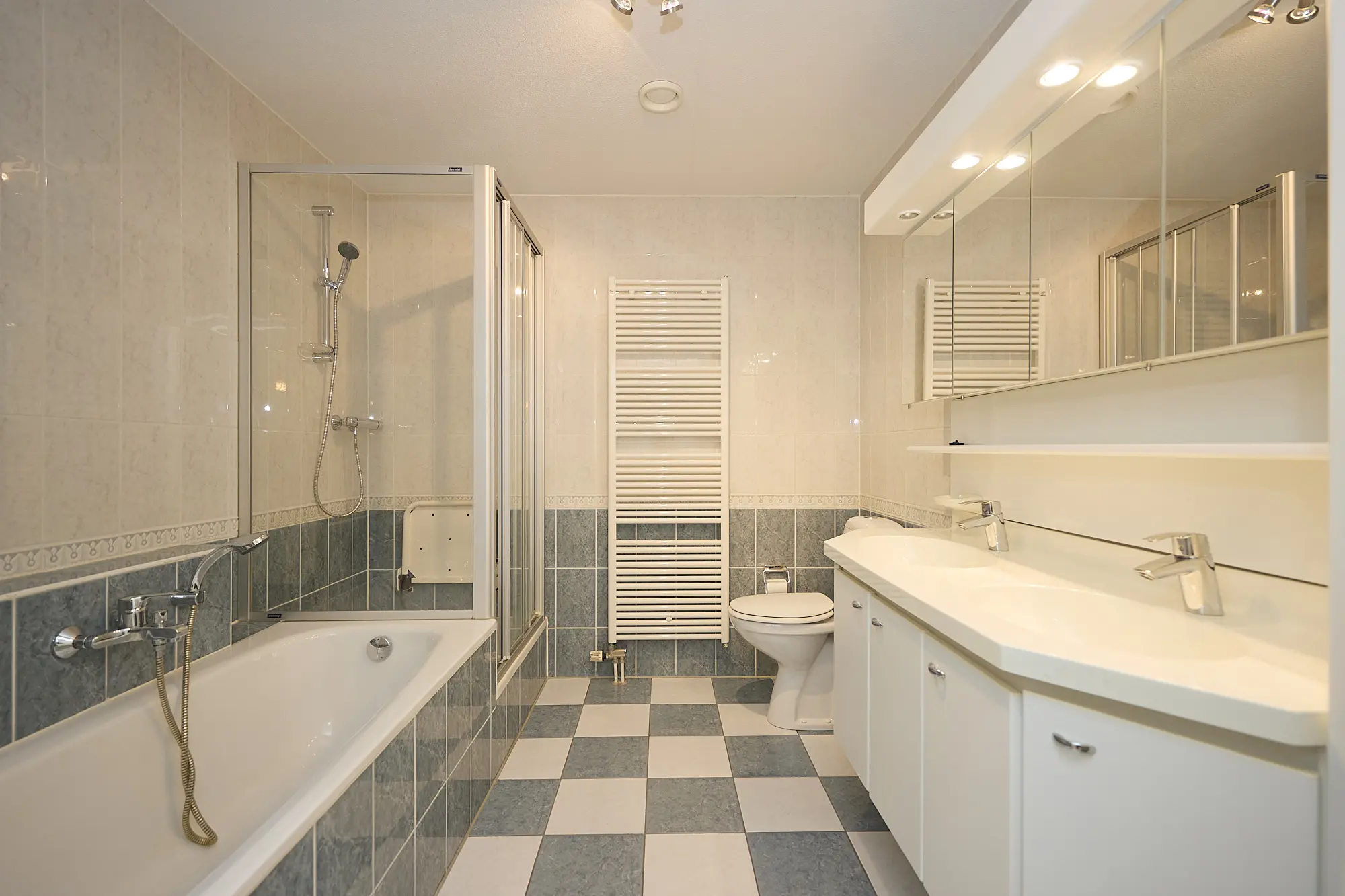 Verder beschikt het appartement nog over 2 riante slaapkamers aan de landzijde elk met een rustige uitstraling en voldoende ruimte om naar eigen wens in te richten. Of je nu een thuiskantoor nodig hebt, een logeerkamer of een comfortabele master bedroom, er is keuze genoeg. Verder is er nog een 2e badkamer met douchecabine, toilet, wasmeubel en ligbad