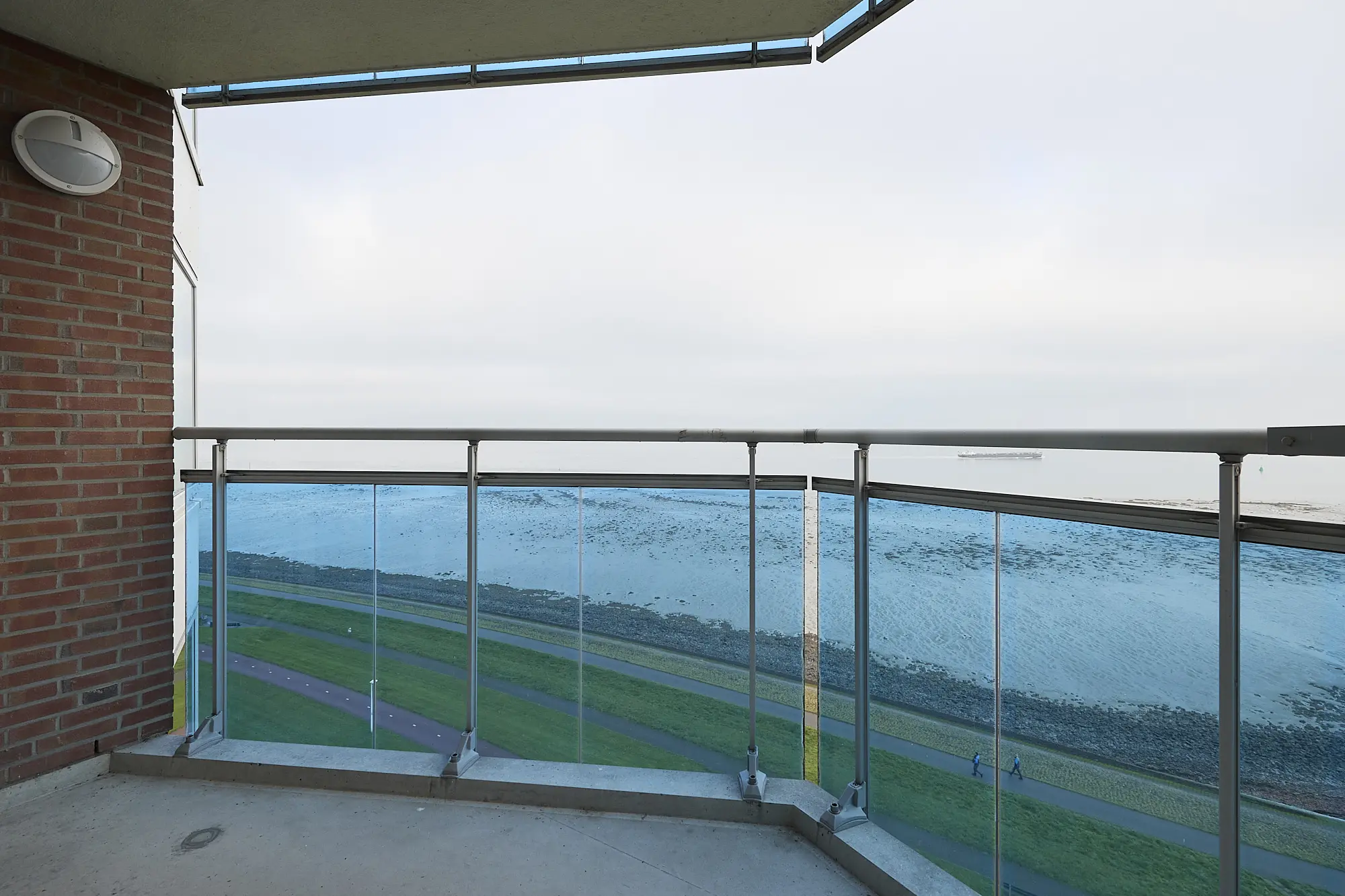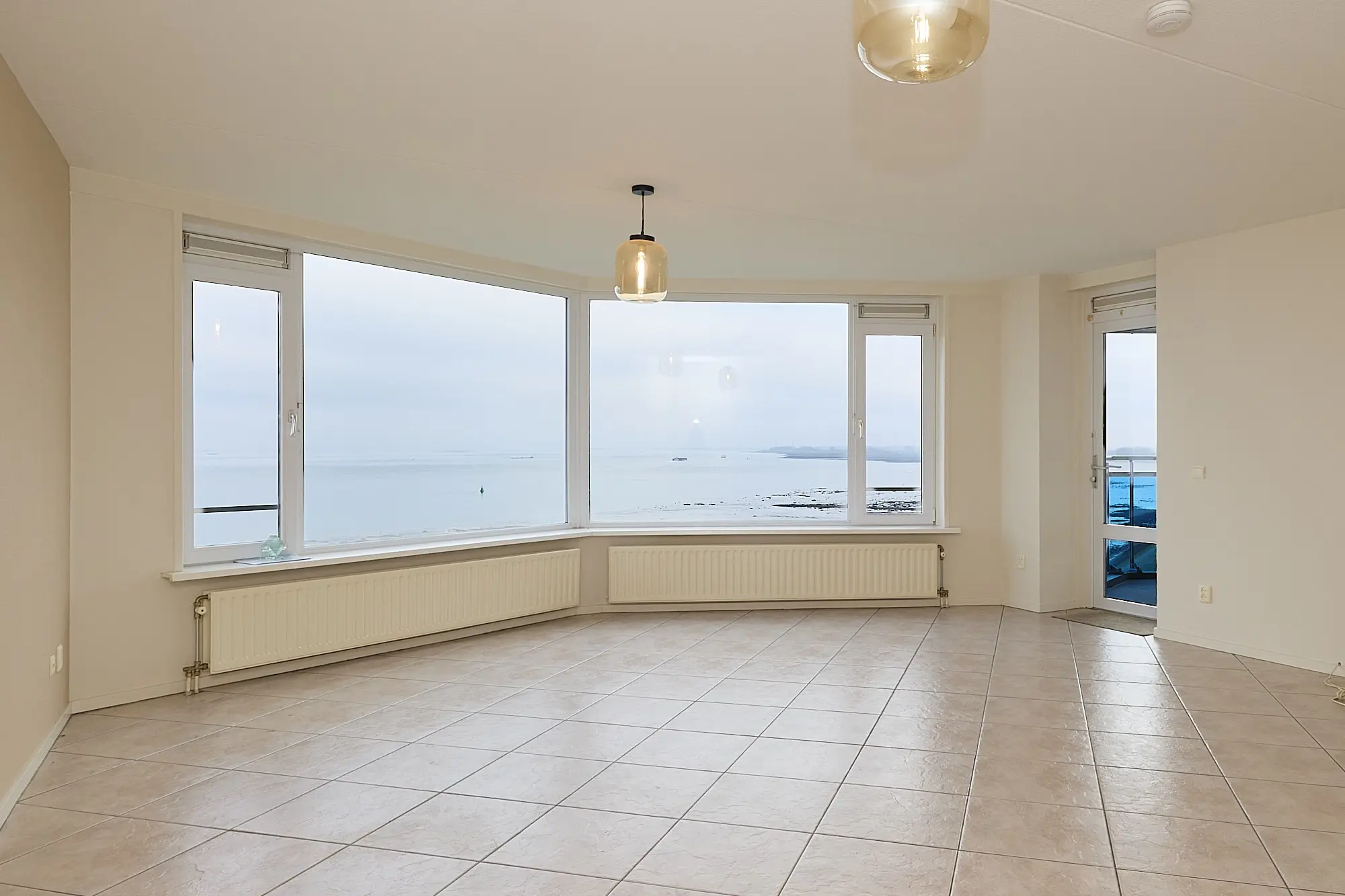 Op de achtste verdieping van een verzorgd gebouw wacht een appartement dat meteen indruk maakt door zijn ruimtelijkheid, licht en serene sfeer. En een uitzicht dat nooit verveelt en dat elke dag een ander lichtspel laat zien. De bijzondere ligging aan de zeedijk geeft je het gevoel dat je voortdurend dicht bij de natuur bent, met de rust van het water altijd om je heen.