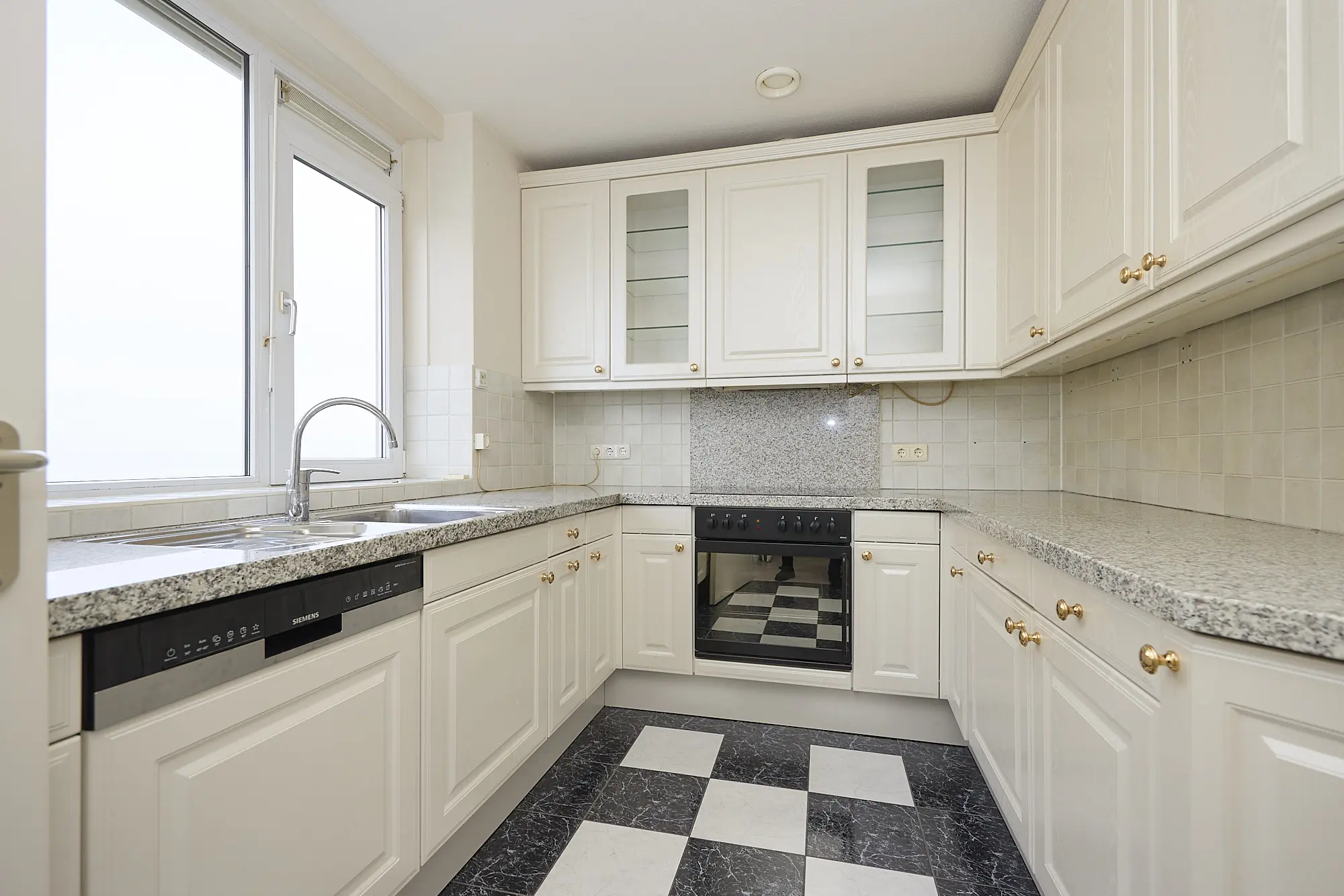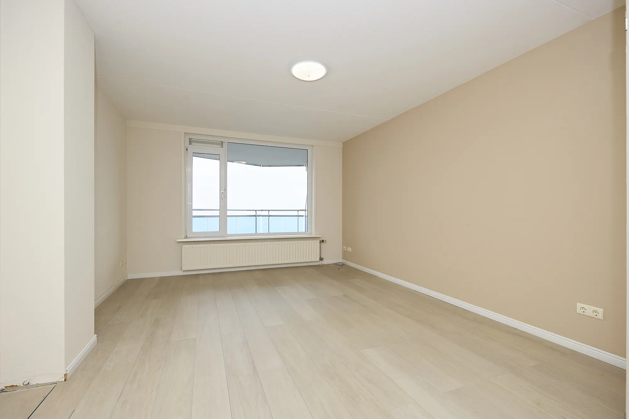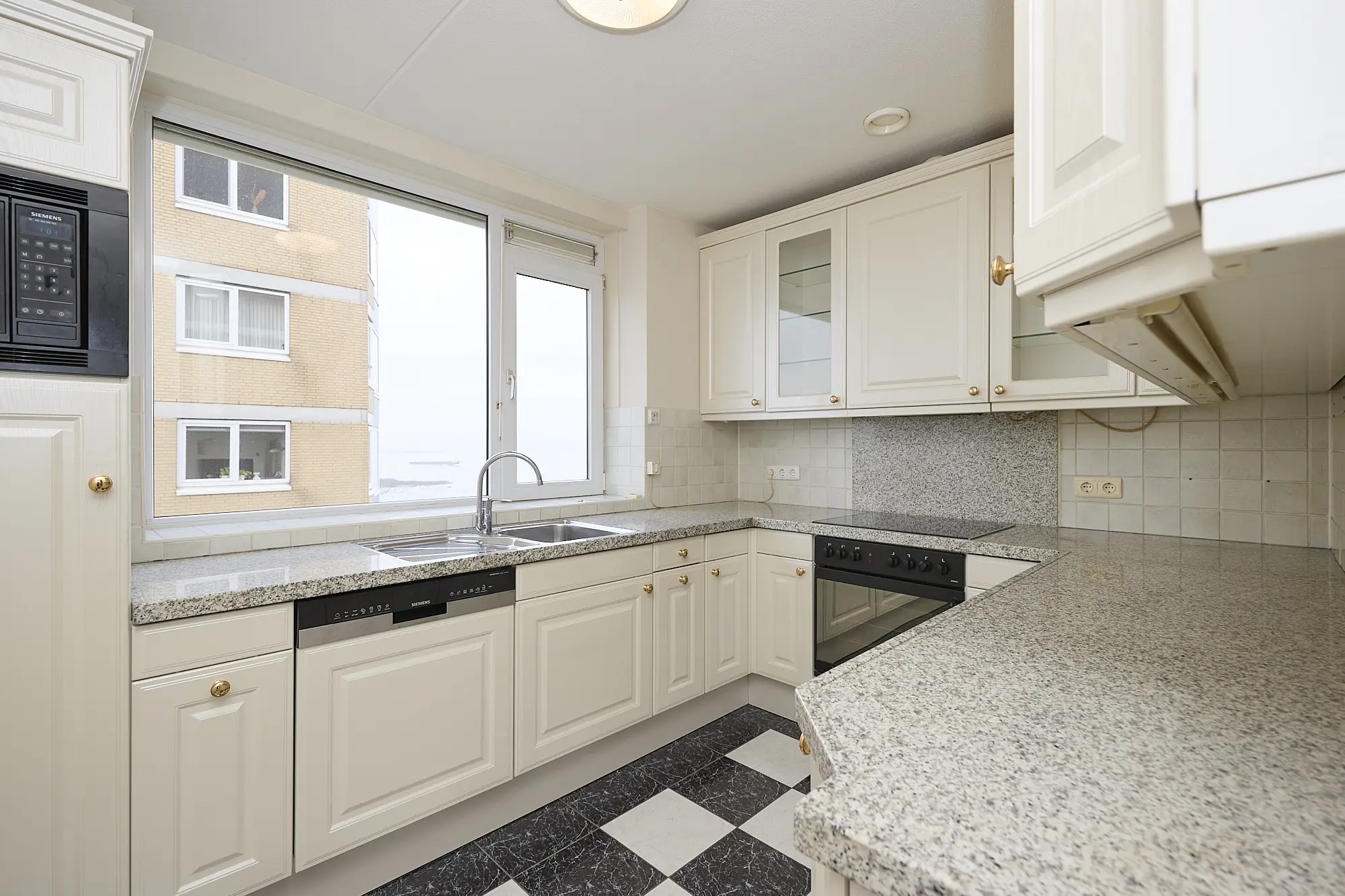 De leefruimte vormt het hart van de woning. De grote raampartijen laten het daglicht binnenstromen en verbinden het interieur op een natuurlijke manier met de omgeving buiten. De ruime woonkamer is een ideale plek om te ontspannen of om gasten te ontvangen, de woonkamer geeft toegang tot het balkon aan de zeezijde. De aangrenzende keuken is praktisch ingedeeld en voorzien van een inductie kookplaat, afzuigkap, magnetron, oven, vaatwasser en koelkast, de keuken biedt alles wat nodig is om met plezier te koken. Aansluitend aan de keuken is de bijkeuken/berging te vinden, hier zijn de aansluitingen voor de wasmachine te vinden en de cv-ketel;, de ruimte beschikt over een extra keukenblokje met bergruimte.