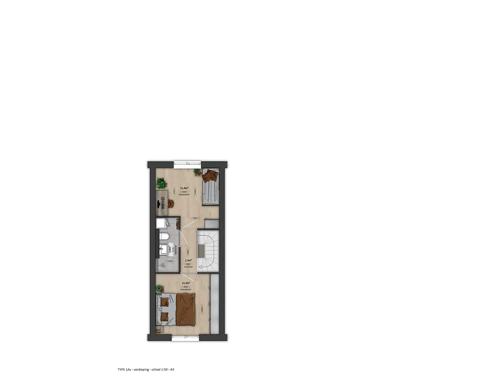 Op de begane grond bevindt zich de woonkamer met open verbinding naar de keuken. Op de eerste verdieping bevinden zich 2 slaapkamers, waarvan één flexibel te gebruiken én een slim ingedeelde badkamer met wasmachine-aansluiting. Alle woningen zijn inclusief sanitair en tegelwerk.